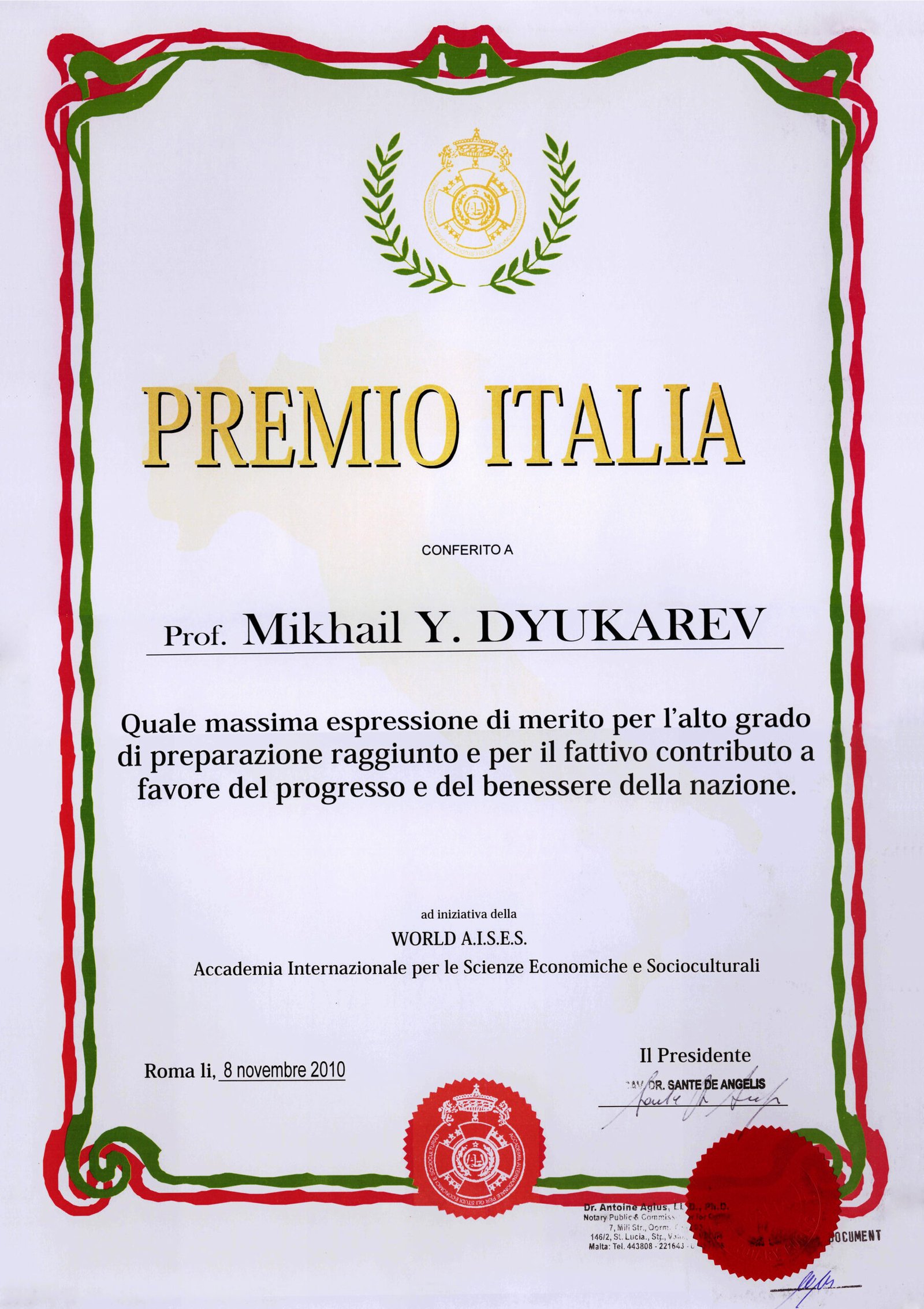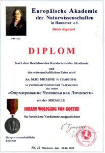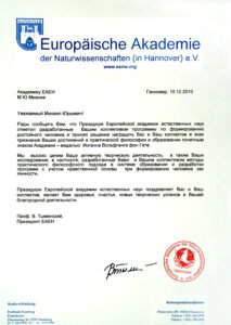 Избран Иностранным членом Общероссийской общественной организацией «Академия проблем Безопасности, Обороны и Правопорядка» «за научную, преподавательскую, просветительскую и общественно-политическую деятельность, создание «Теории Развития Общества» (диплом ДП № 13255).